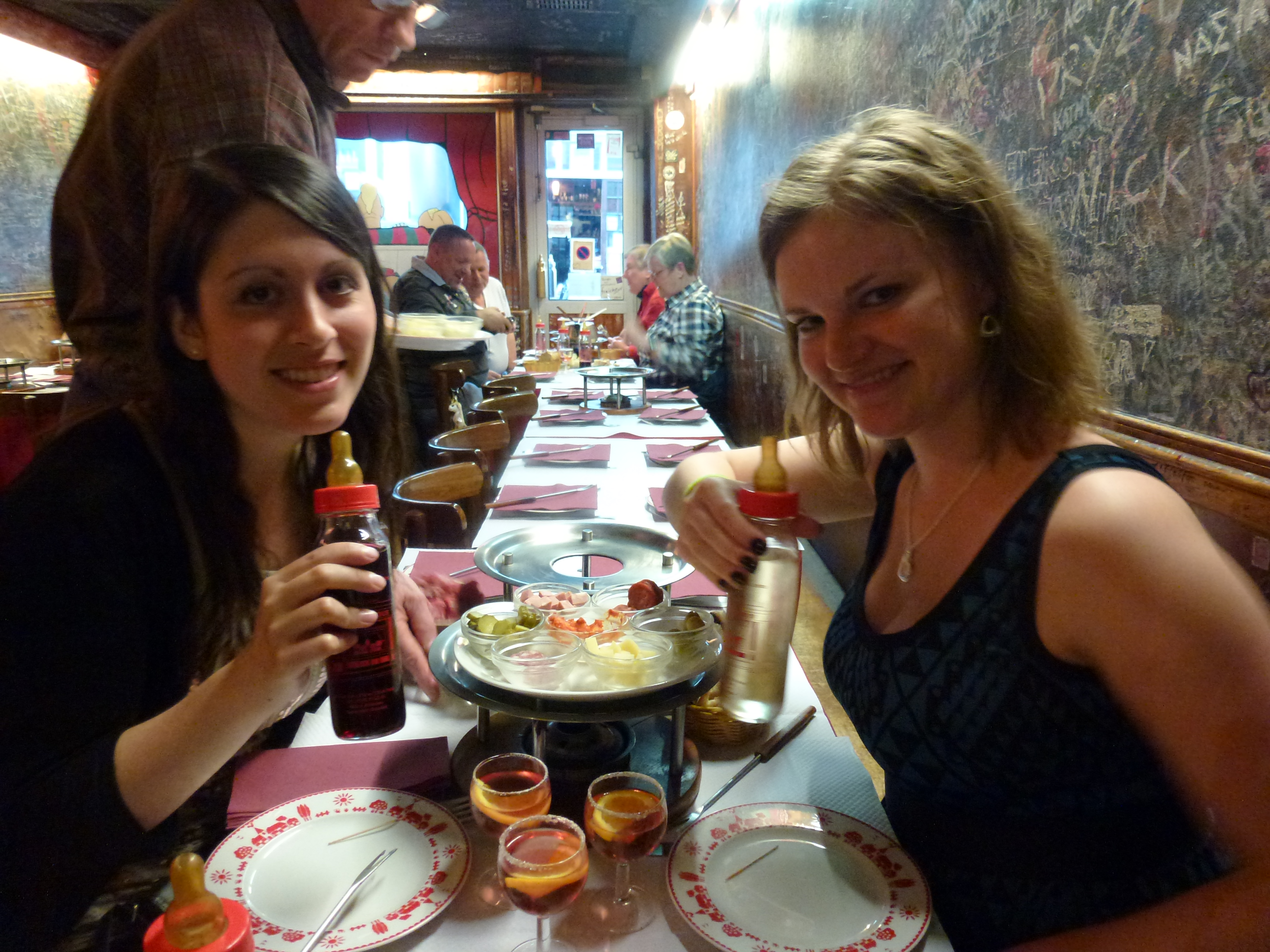 - Le Refuge des Fondues – located in Montmartre near the Abbesses metro station. It’s a fondue restaurant that is cheap, has “family style” long tables so you can meet other travelers, and they serve wine in BABY BOTTLES. How cool is that? Pretty darn cool if you ask me. Though the food is not the best you can find in town, the atmosphere is what really makes it worth it. If you’re looking to have a good time in a unique environment, this is not to miss.