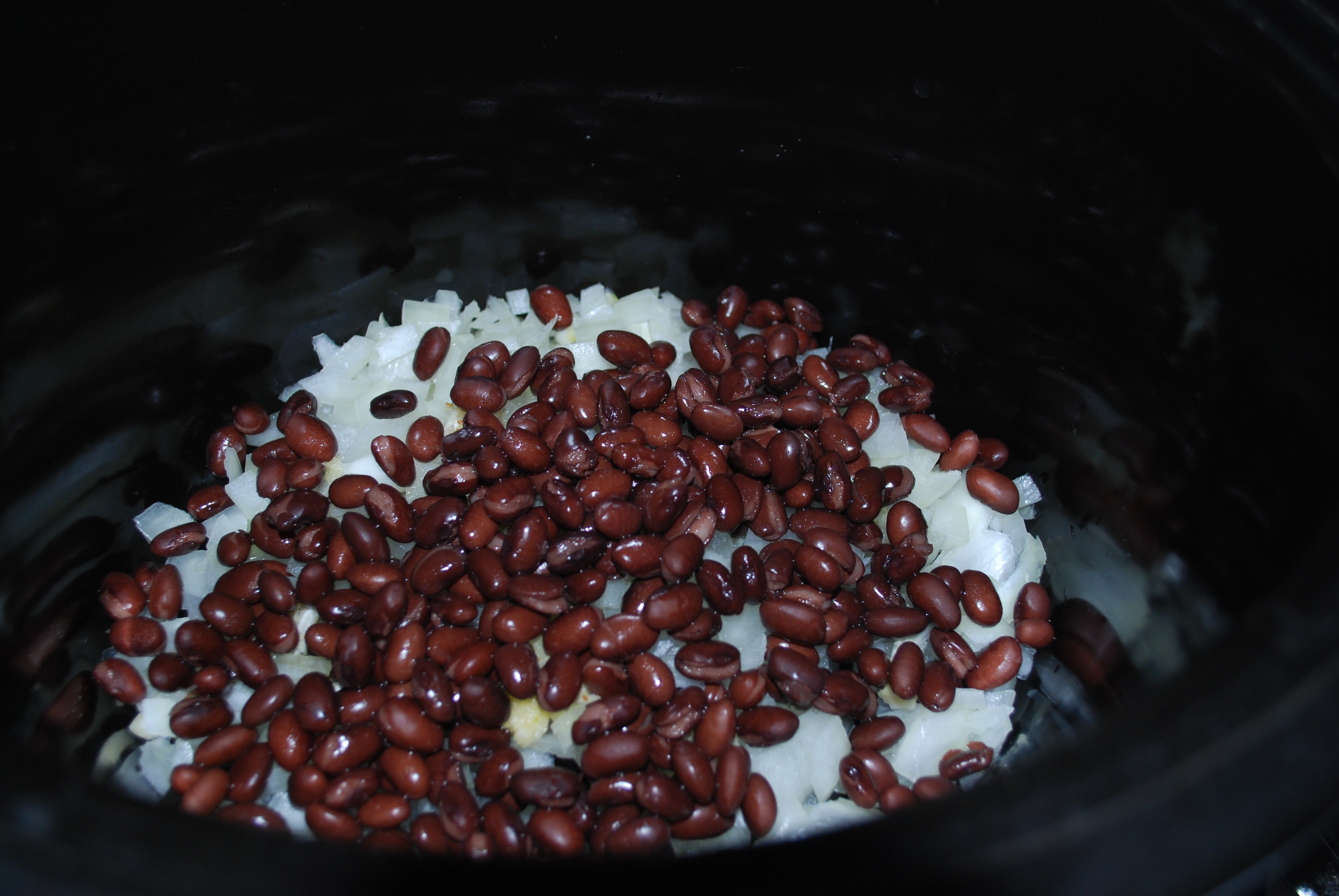 Like I said, most of this recipe just involves throwing things into the crock pot, but you do need to chop a couple things. First, dice 1/2 a yellow onion, then place into the crock pot.