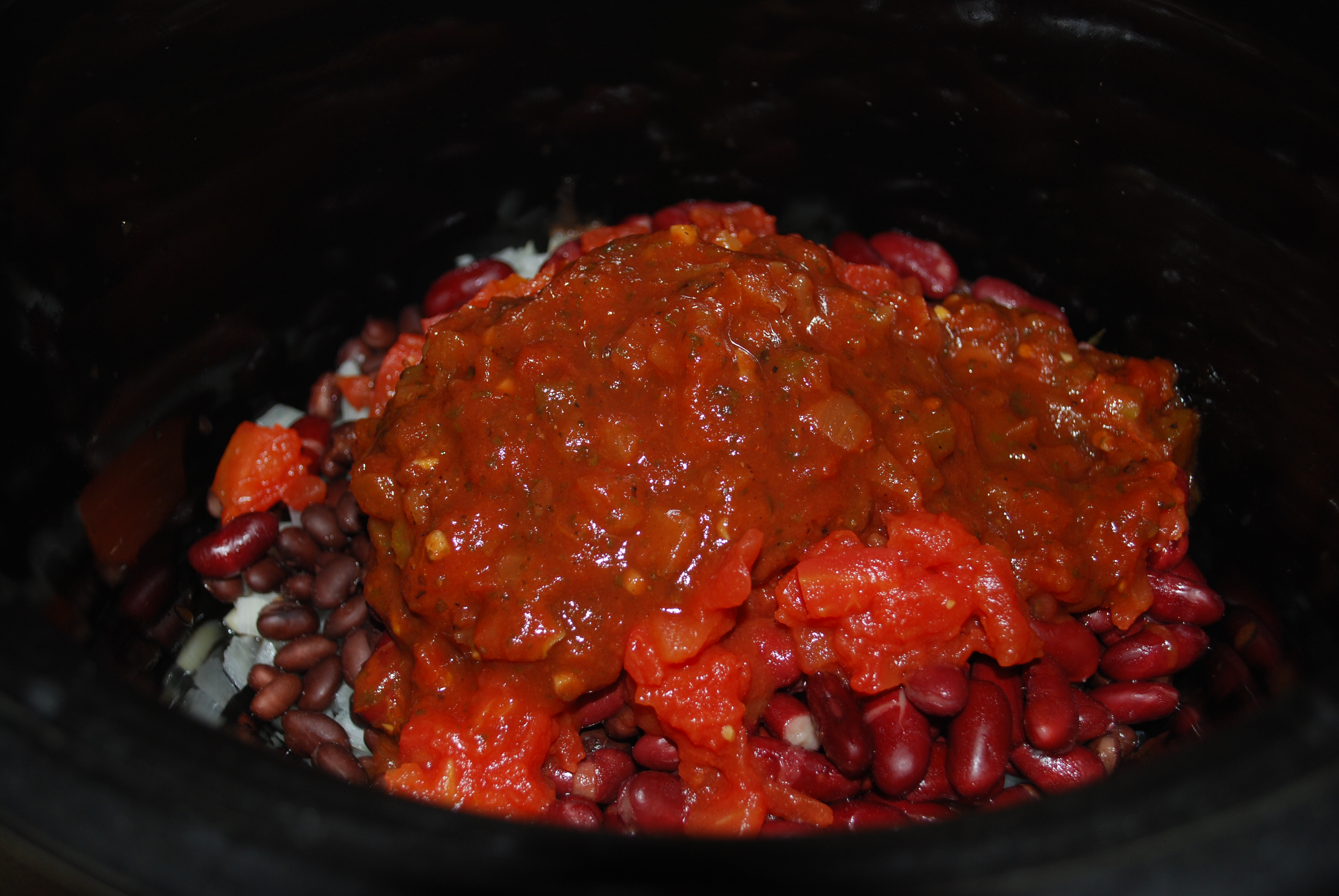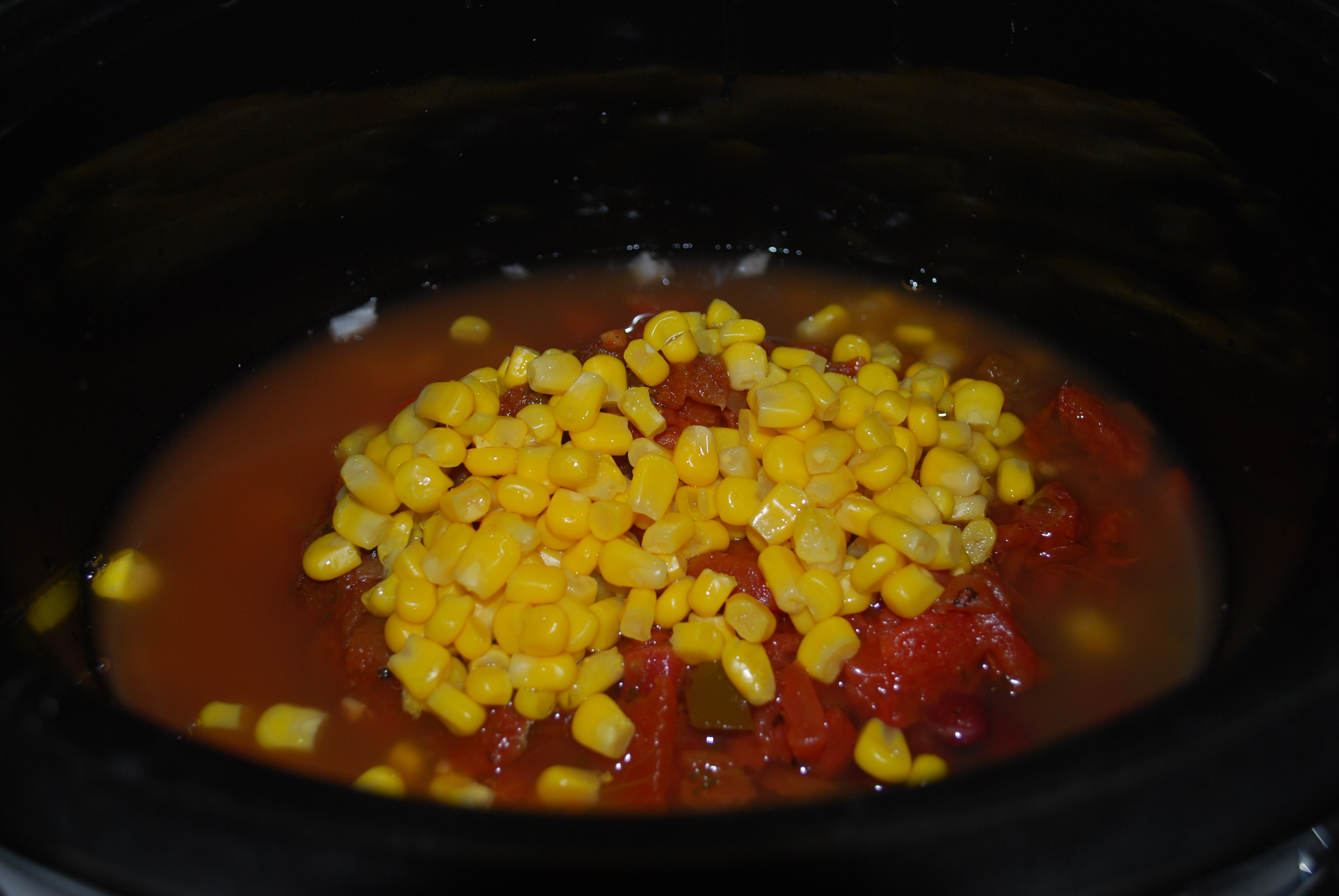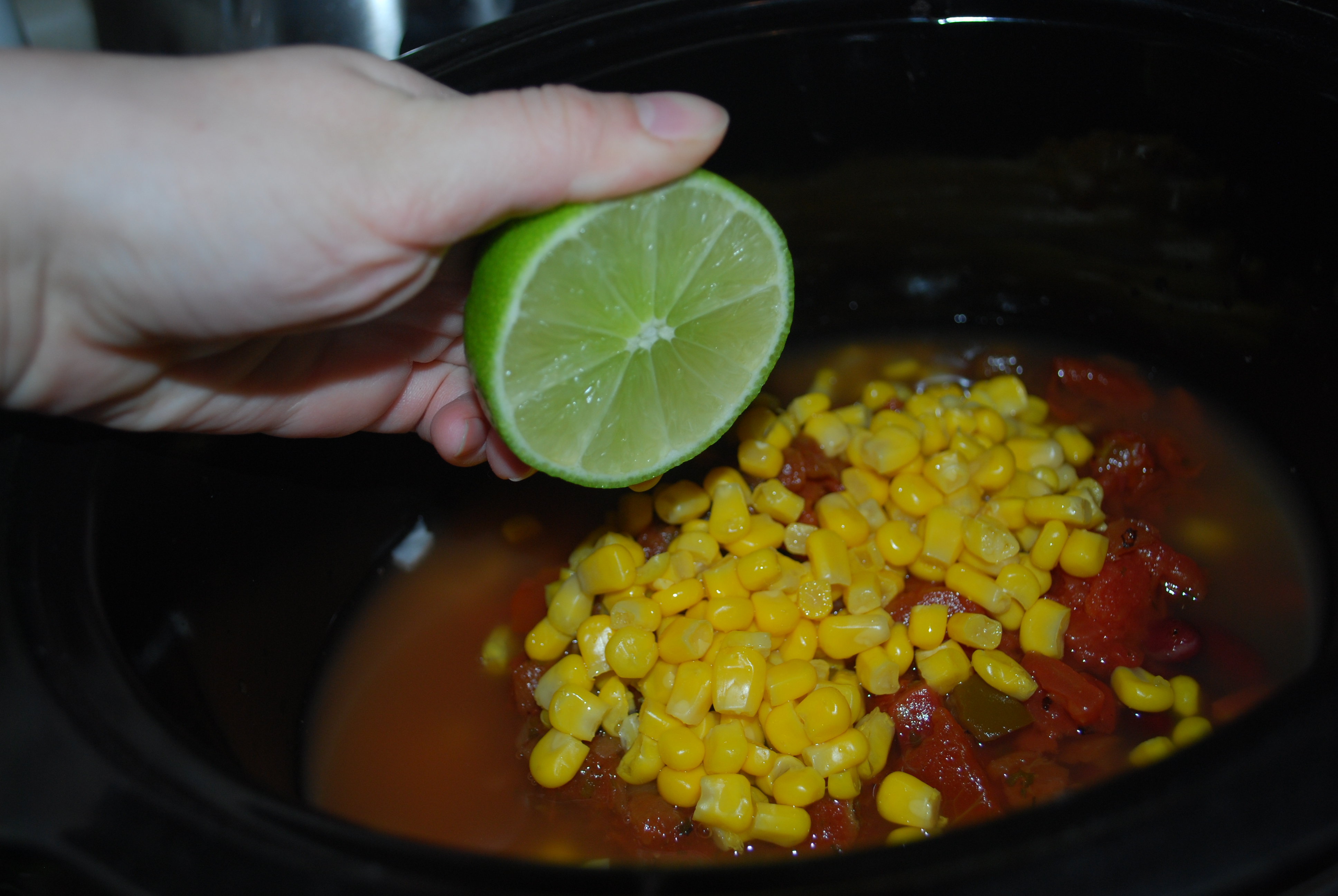 - Add all ingredients to the crock pot. Stir to combine. Cover and cook on low 3-4 hours. Add more salt and pepper to taste. Serve with fresh avocado, tortilla chips, and fresh cilantro.
