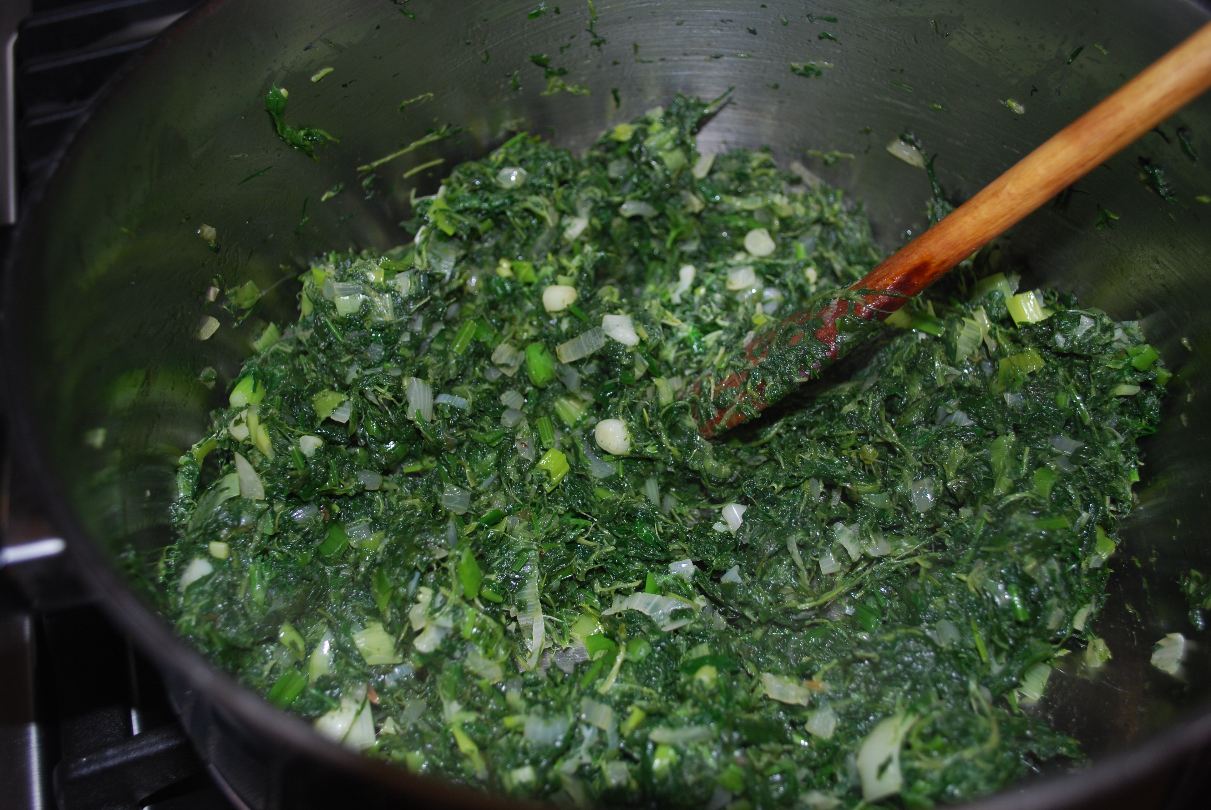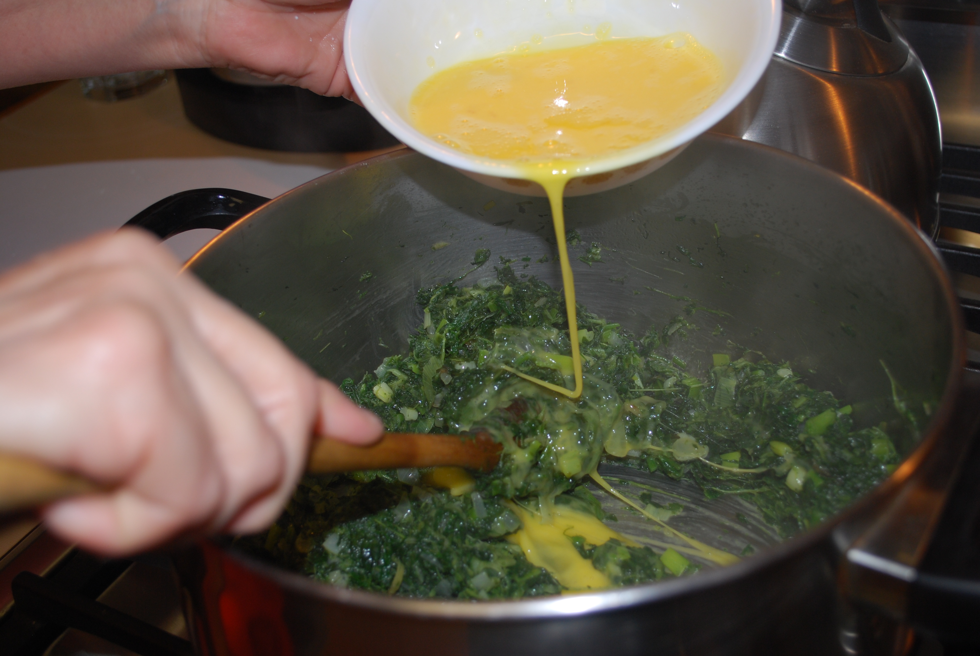 - In a bowl, whisk eggs very well, then very slowly add them to the spinach mixture, mixing very well. Season mixture with salt and pepper.