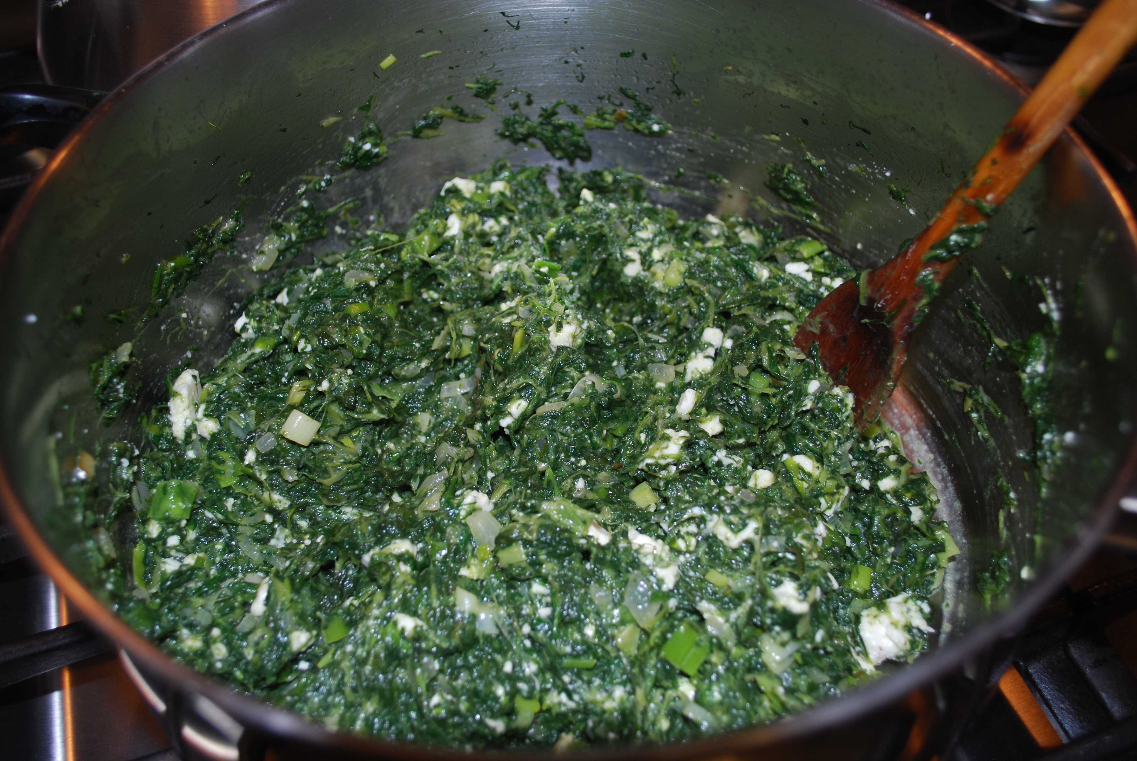 - Preheat oven to 350. Take fillo out of the fridge to let it get room temperature. Chop and prepare all ingredients and drain the thawed spinach.