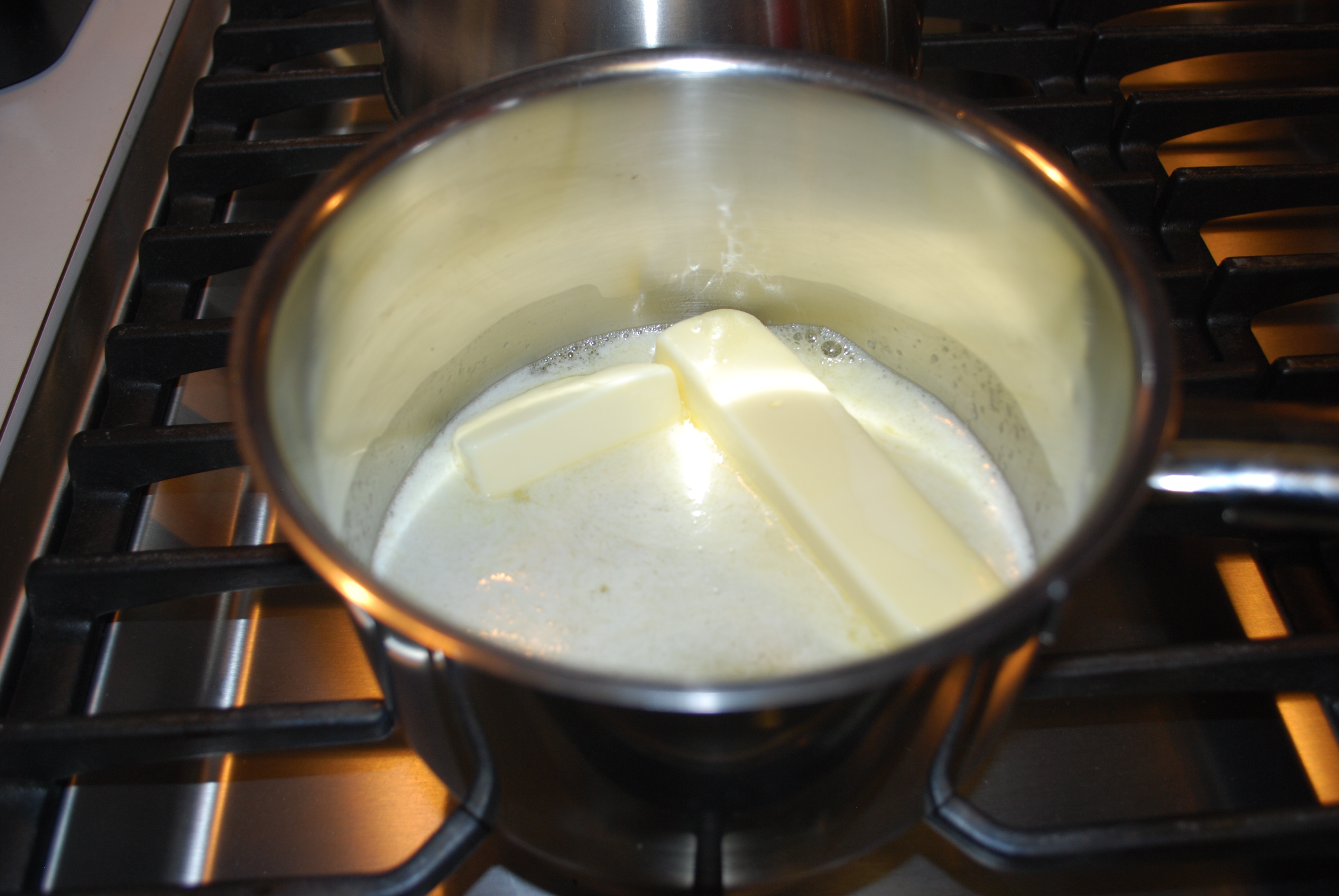 In a different sauce pan, melt 3 sticks of butter. You will use this butter on the fillo dough.